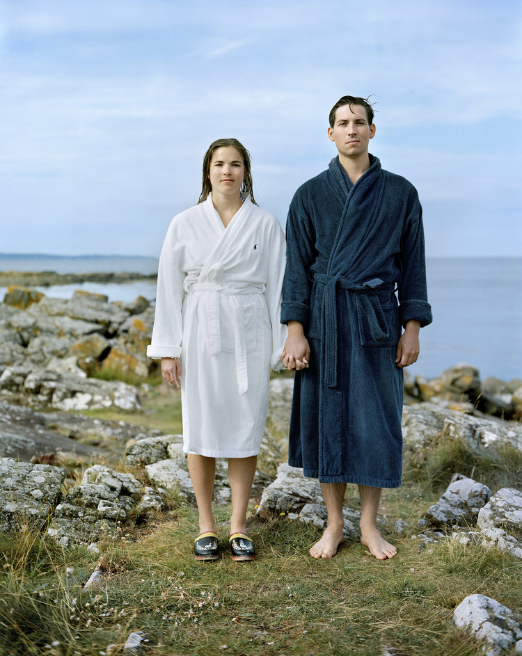 From 7/21/22 to 10/30/22, the featured exhibit at ASI was The Morning Dip an ongoing portrait series by Peggy Anderson, a Paris-based, American-Swedish artist/photographer. Each portrait captures one to three participants of the Swedish morning ritual in their bath robes.